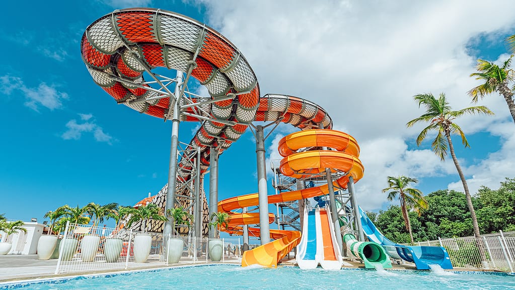 The resort offers 500 rooms, suites, and bungalows, along with 6 restaurants, waterpark, a Kids Club and a Teens Club, pickleball court, and a secluded beach that you can call your own.